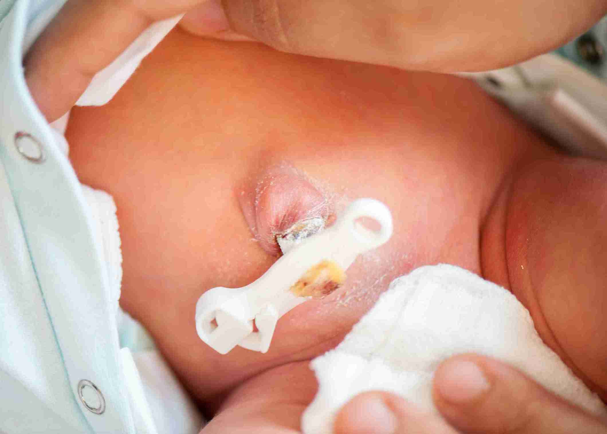 If you see any of the signs of omphalitis, seek medical attention immediately. Umbilical cord infection can very quickly turn into serious conditions such as sepsis or necrotising fasciitis. Treatment with intravenous antibiotics is the accepted treatment and should be undertaken immediately.